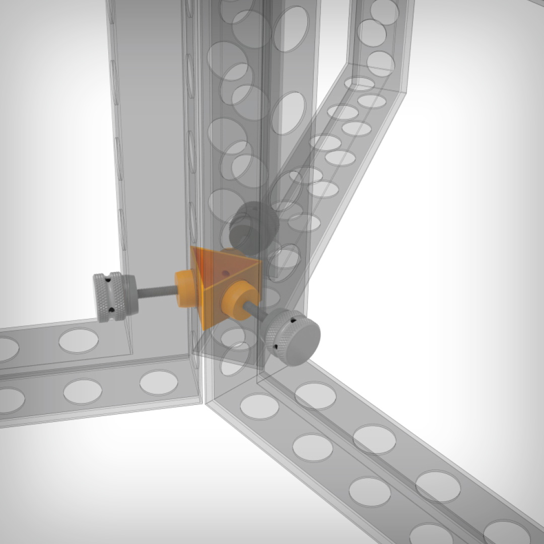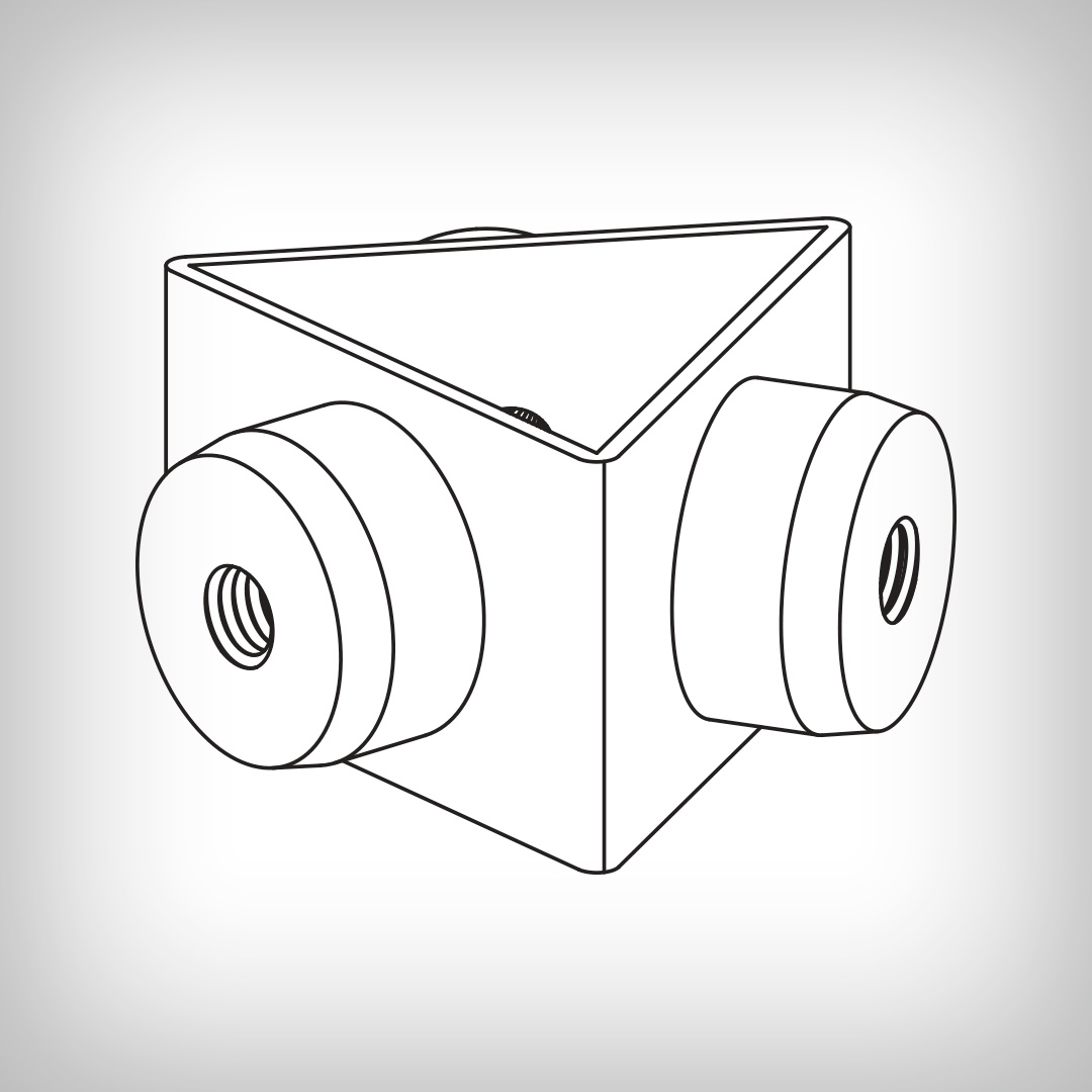 120-degree 3-way aluminum frame connector – connect three frame panels in a triangle configuration.