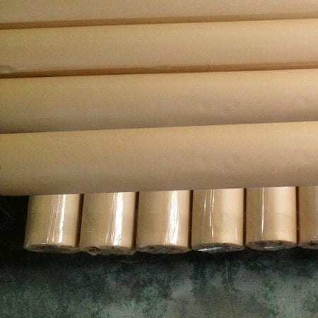 Tissue is intended to be used as a barrier to prevent surplus dye-sub gases from contaminating the recirculating Nomex belt of the rotary calendar press. It basically acts as a continuous thin paper web used to transport the textile roll through the heat calendar.