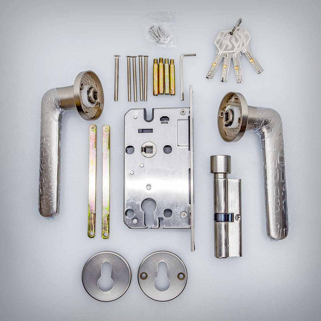Complete door handle and lock set – ready to install